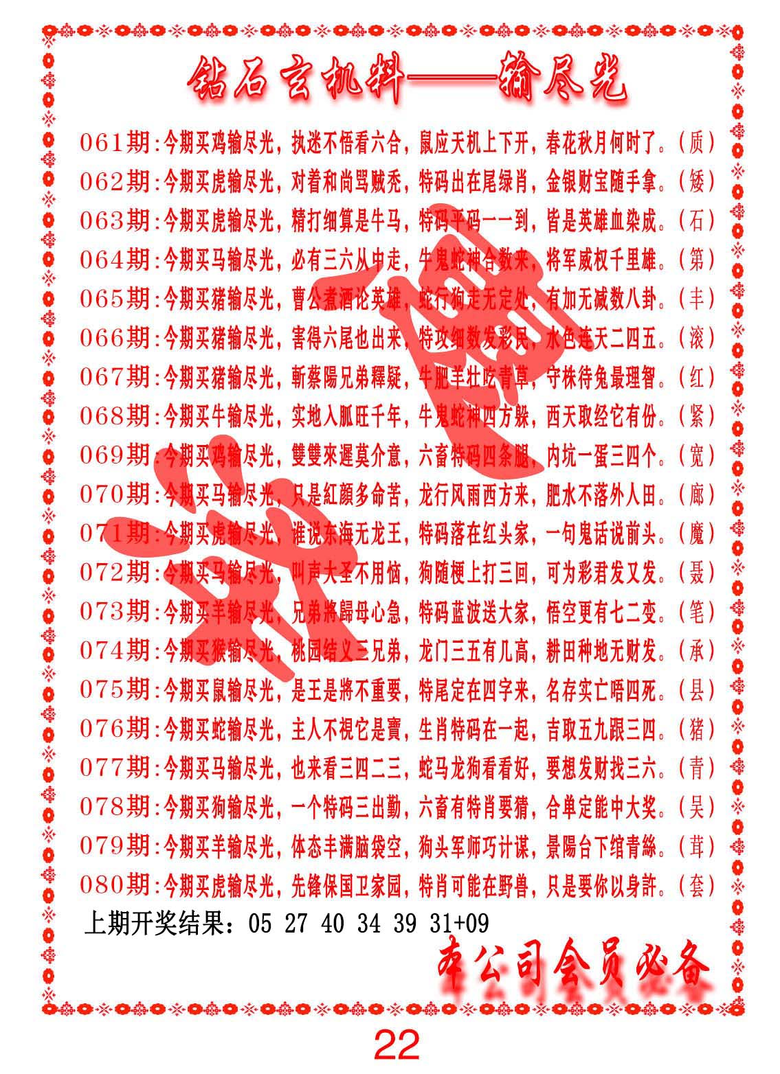 钻石玄机诗-输光料