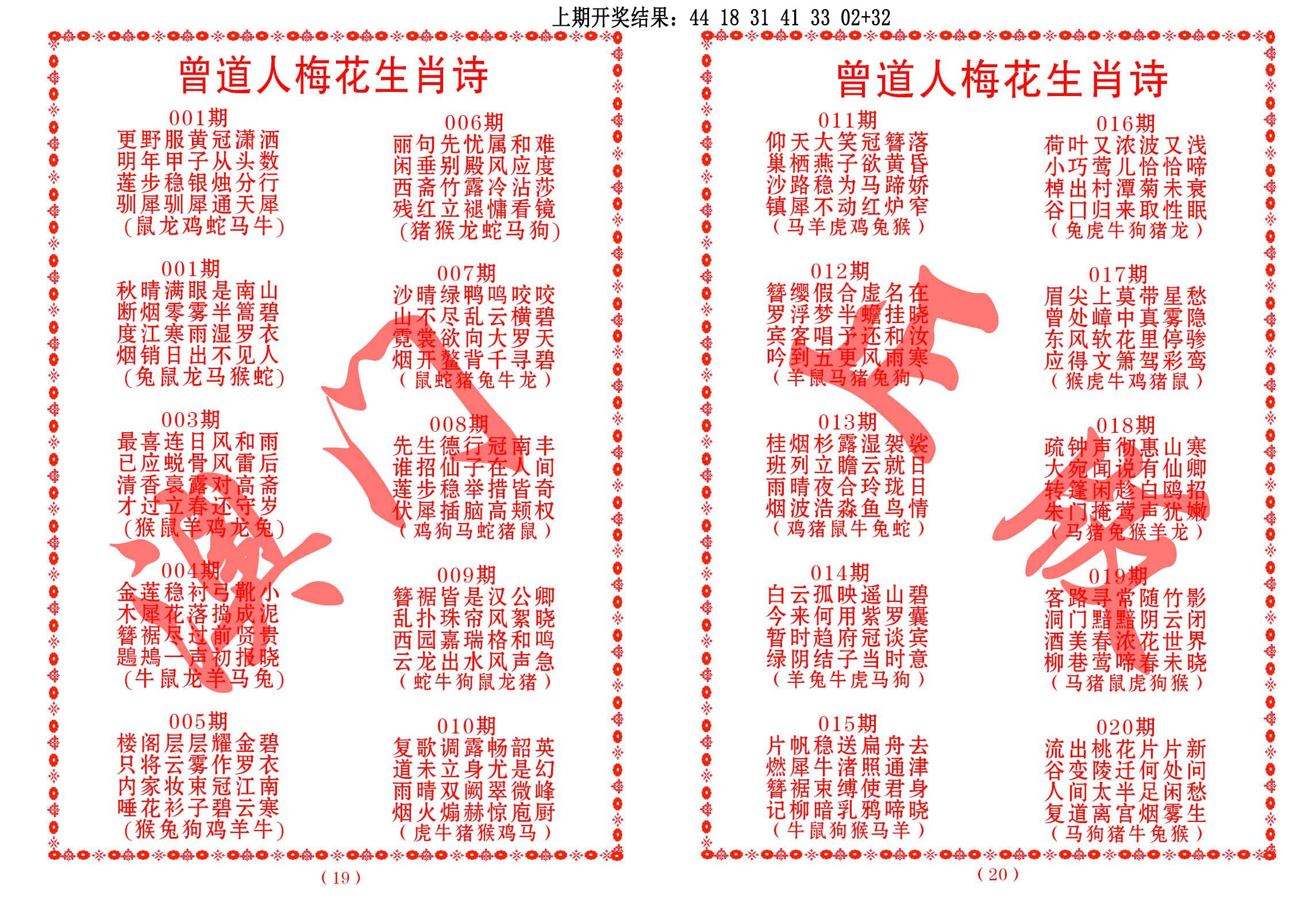 左肖:鼠牛龙蛇猴鸡 右肖:虎兔马羊狗猪