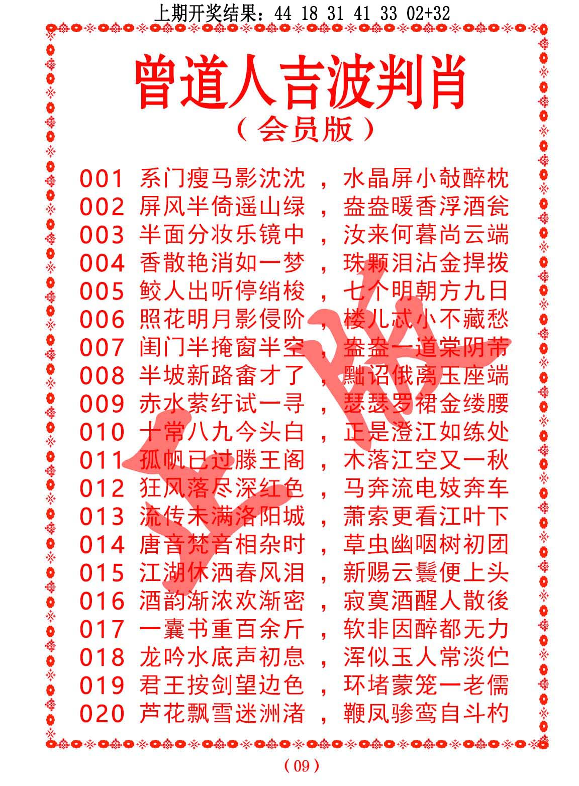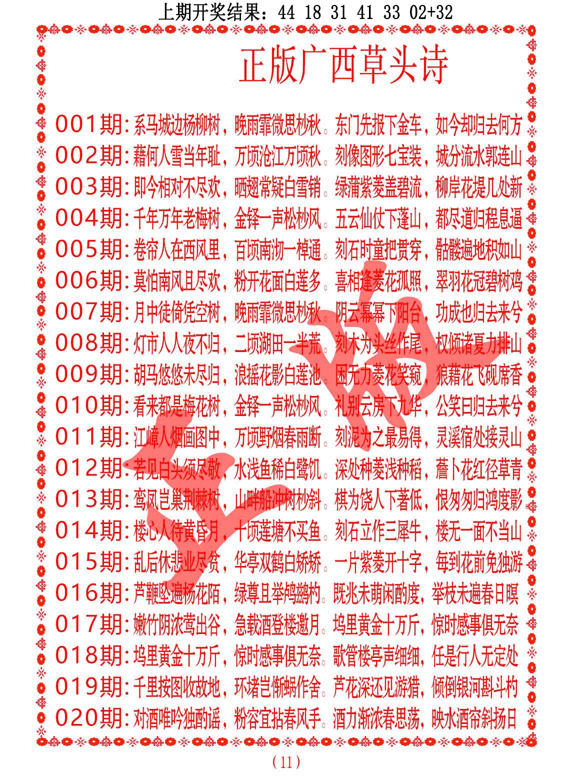 钻石玄机诗-输光料