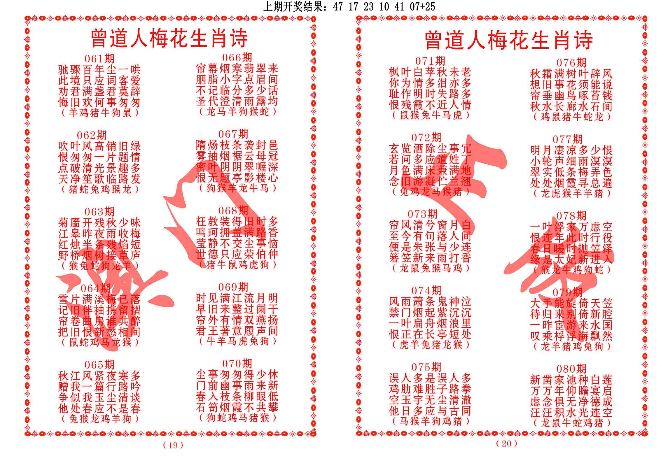 天肖:兔马猴猪牛龙 地肖:蛇羊鸡狗鼠虎